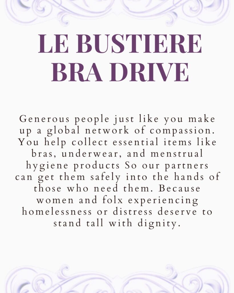 For your first donation, you’ll receive 10% off your Le Bustiere purchase, so you can shop for a new bra!